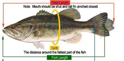 Measure length.— The live fish must be measured before releasing it back into the water. The most essential measurement necessary is the overall length. This is a nose to end of tail measurement.
